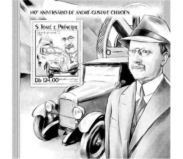 На выпущенном в 2018 году островным африканским государством Сан-Томе и Принсипи марочном блоке в честь 140-летия со дня рождения Андре Ситроена видны шевронные шестерни и первенец фирмы Citroёn Type A
