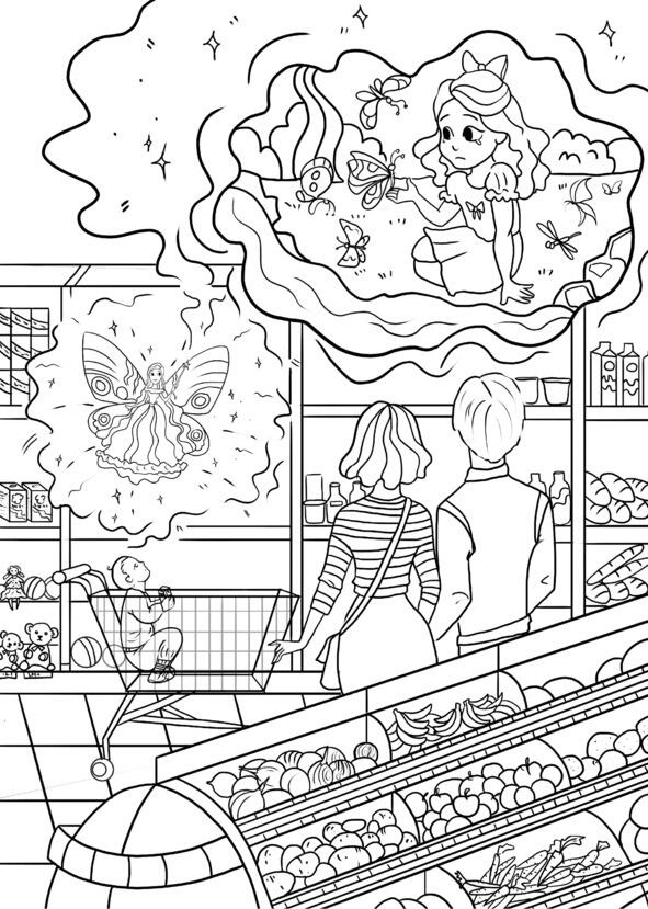 Как-то раз пошли они все вместе в супермаркет. Это магазин, где можно купить много полезных и нужных вещей: хлеб, молоко, картофель, морковь, лук, бананы, яблоки, мороженое и игрушки. Сема сидел в тележке для продуктов на специальном сиденье и хотел все потрогать руками. Даша шла рядом. Она просила купить ей то печенье, то сок, то мороженое. Девочка отвлекала родителей, и они забыли, что хотели купить в магазине. Папа дал Семе маленькую пачку сока подержать в руках, чтобы он был чем-то занят. Он был очень рад и рассматривал рисунки на упаковке. Даше это не понравилось, потому что она тоже хотела сок, а ей не дали. Она начала капризничать и просить сок.