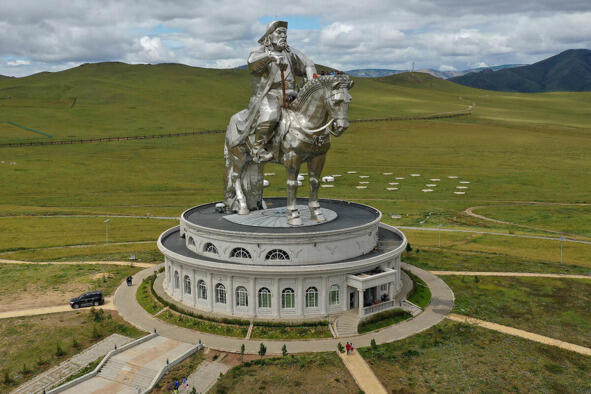 Первый, и самый, пожалуй, самый грандиозный по размаху лавина монгольских воинов, одетых в «хатангу дегель» (бронехалаты) со шлемами «дуулга» на голове. Их предводитель великий каган Монгольской империи Чингисхан (1162 1227), основатель самой крупной в истории человечества континентальной империи, организовавший завоевательные походы в Китай, Среднюю Азию, на Кавказ и Восточную Европу.