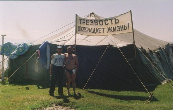 Всеми трезвыми делами заправляли два человека. Сергей Николаевич был главным трезвенником, ему-то мы и звонили со станции. Было ему лет сорок. Второй пузатый бородатый человек лет 50-ти, похожий на священника, регулярно проводил лекции о вреде пьянства и о здоровом образе жизни в большой штабной брезентовой палатке, действующей также и как столовая. Лекции, на которые приходили все гости слёта, были для них не очень полезны: ведь все и так были трезвенниками, а поселковые пьяницы на лекции не приходили. Деревенская бабка, узнав, на какой мы приехали слёт, задумчиво сказала: