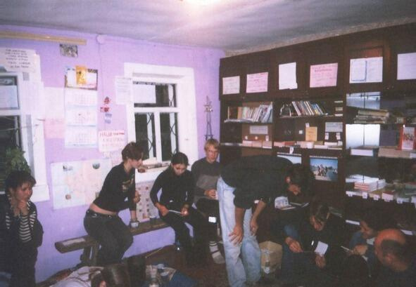Утром в пятницу мы впятером (Демид, Игорь Длинный, Татьяна, я и приехавший к нам Владимир Печёный) выехали из Иркутска на электричке. Вагоны летом полны рюкзачного народа. Мы расклеили наши объявления в тамбурах. Планировали выйти на ст. Ангасолка, не доезжая двадцать километров до собственно Байкала, и срезать пешком через лес.