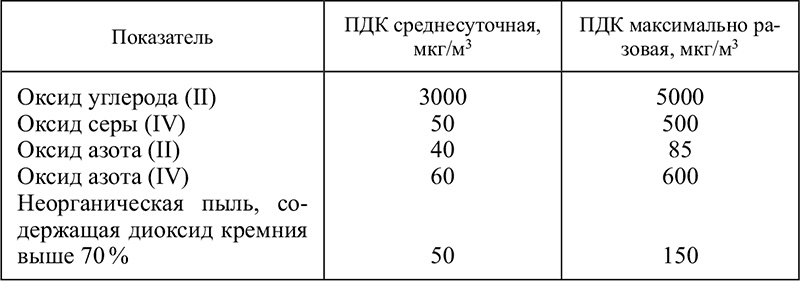 Таблица 1.2.Предельно допустимые концентрации вредных веществ в атмосферном воздухе населенных мест