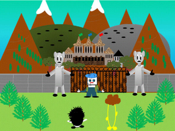 Очень приятно! говорит незнакомец, затем обращается к Нолику: Как тебе наша страна?