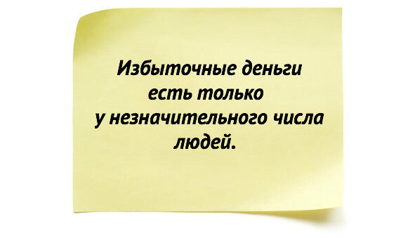 Хорошо, а что взамен такого образа жизни? Только не говорите, что деньги. Избыточные деньги есть только у незначительного числа людей. У большинства они так и не прибавляются. Даже если вам удается иметь солидный доход, это вовсе не означает автоматического наличия свободных денег. Их по-прежнему не хватает. Так в чем же дело?