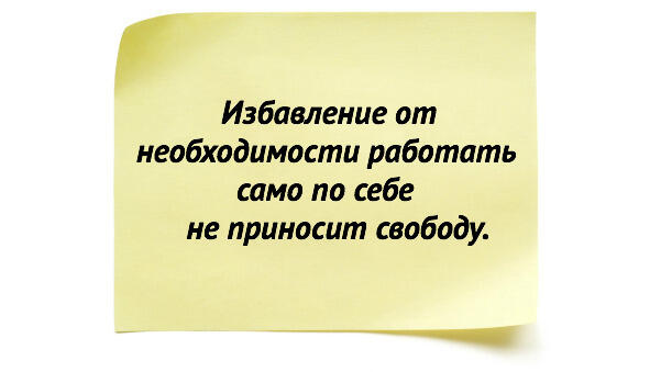 Избавление от необходимости работать само по себе не приносит свободу. Существует большая вероятность того, что человек вновь вернется к прежним занятиям и прежнему образу жизни.