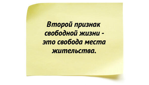 Итак, вторым признаком свободной жизни является свобода места жительства.