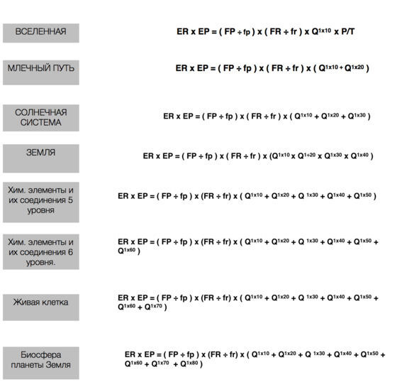 В начале был атом. Затем атомов стало так много, что их количество инициировало новое качество: по разумным полям каждого атома текут бесконечные потоки энергии разума, которые образуют две основные силы мироздания силу природы (FP) и силу разума (FR). Последовательно рождаются галактики, звездные системы и планеты. Без силы природы невозможно было бы рождение галактик, звездных систем и планет. А без силы разума невозможна была бы никакая эволюция. А позже, на поверхности планеты Земля, благодаря химическим элементам пятого и шестого уровней, образуются каналы по которым начинает течь жизнь: потоки энергии разума, которые передают код источника жизни: взаимодействие силы природы и силы разума в крошечном организме, живой клетке.