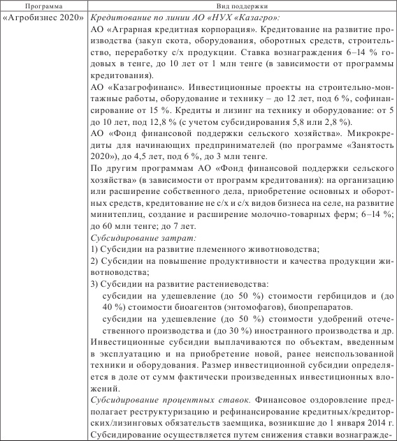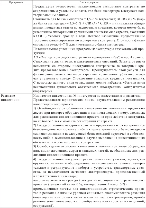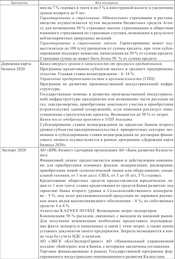 Следует отметить, что в Казахстане субъектам малого и среднего предпринимательства оказывается значимая государственная поддержка в рамках различных программ (табл. 2.4).
