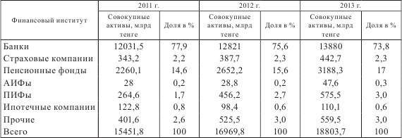 Таблица 2.3.Совокупные активы финансовых посредников Казахстана [15]
