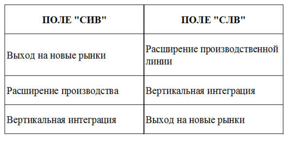 Фактически, при такой формулировке возможностей в виде готовых стратегий поля «СИВ» и «СЛВ» становятся лишними.