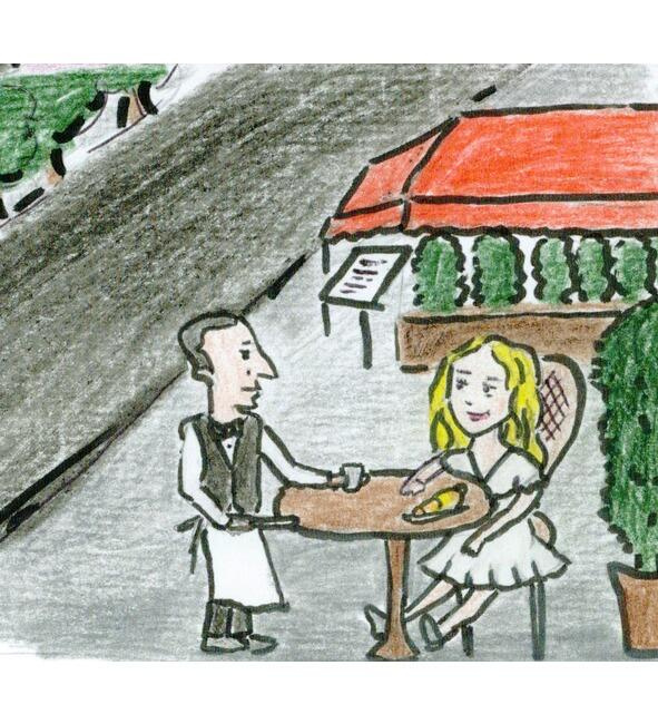 Через несколько часов с работы возвращается Пьер. Ленка сажает всех за стол и распределяет по тарелкам салат из помидора и базилика.