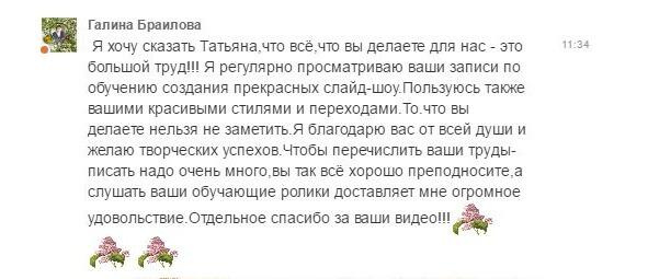 Но в голове все равно засела мысль о том, как было бы круто научиться создавать самой такие оригинальные, красивые фильмы в подарок друзьям и родным, да и просто для себя. Тогда я и думать не смела, чтоб еще и зарабатывать на заказах слайд-шоу.