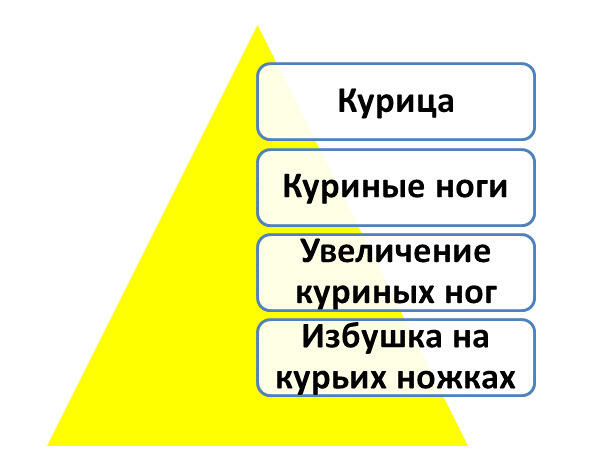 На рисунке 10 дан условный пример народного творчества, в котором описан процесс рождения известного сказочного персонажа избушки на курьих ножках в соответствии с моделью, представленной на рис. 9.