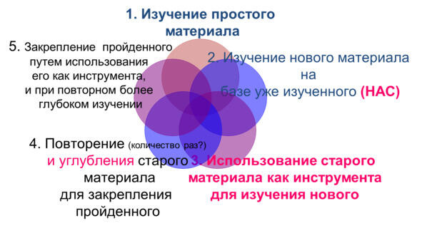Следом приступаем к 3 разделу (новой лексике) в качестве инструмента уже используете пройденную на 2 шаге грамматику и т. д.