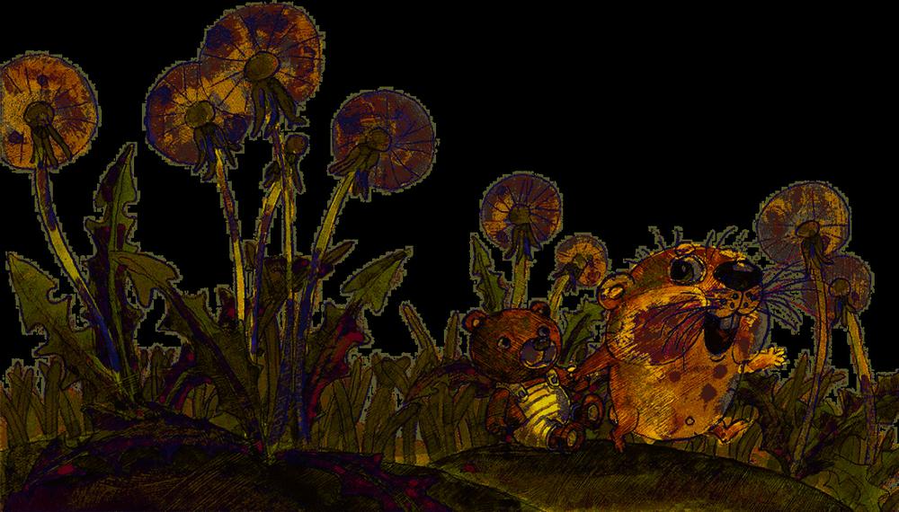 Очень они подружились. И разговаривал Хома с ним. И делал вид, что кормит. И гулял с маленьким другом, за лапку водил. Вокруг норы. И спать рядом с собой укладывал. В норе.