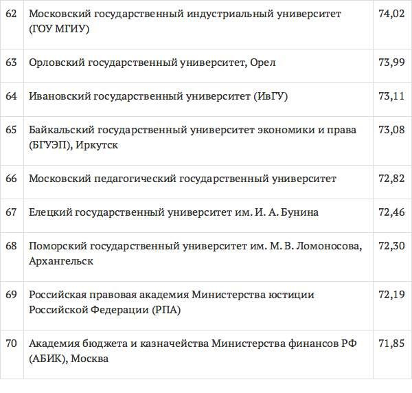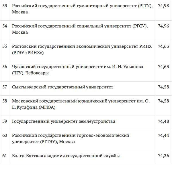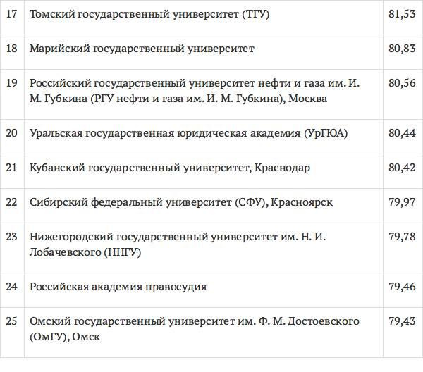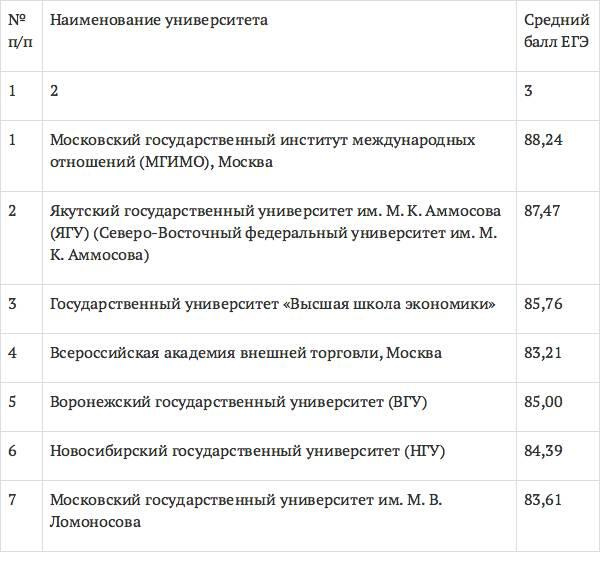 Рейтинг юридических вузов/факультетов по баллу ЕГЭ