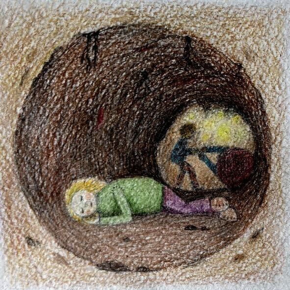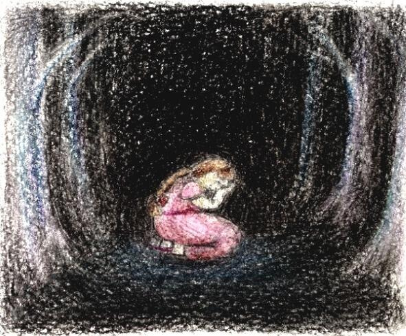 На полянке, перед домиками, издалека заметила девочка большую клумбу, но, подойдя поближе, рассмотрела, что не цветы на ней, а её любимые куклы растрепанные, изорванные, беспомощные. Только протянула руку, как прямо над ухом раздался крик: