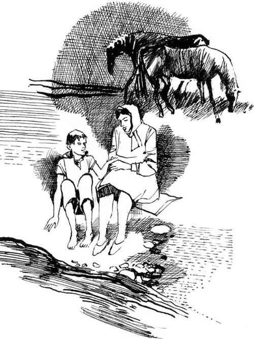 Мишка не отзывается, не шевелится. На душе у него тревожно и смутно. Он знает, что ослушаться матери нельзя, но жаль уезжать от Вьюнки, от этих лугов «И как тут всё останется без меня? думает он. Скорее бы вырасти большим, помирить их. Как они не понимают! Зачем ехать? В областной»