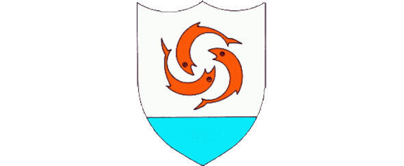Дельфины символизируют единение и силу, а голубое подножие Карибское море, окружающее остров.