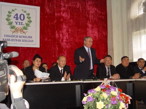 1965 году в городе Ургенче, в здании бывшего пединститута был открыт строительный техникум. Подобраны опытные учителя, стройтрест 167 в короткие сроки построил общежитие для учащихся. Были трудности. Не хватало технических средств обучения, наглядных пособий Преподаватели и учащиеся справились с проблемой собственными силами. Уместно вспомнить работавших в это трудное время людей-заместителей директора И.Б.Цоя, Д. Джаббарова, заведующих кафедрами и отделениями Э. Худайберганова, О. Садыкову, О. Машарипову, М. Сабирову, Х. Фатхуллаева, З. Хакимова, преподавателей Р. Каримова, Н.С.Голованова, Ким. Ден. Хена, Н.С.Гаязову Долгие годы директором был кандидат педагогических наук Саид Ибрагимович Аллабергенов.