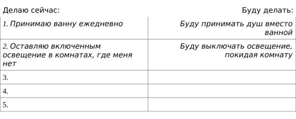 Определив места с максимальным расходом энергоресурсов, составьте план ваших действий по сокращению затрат: