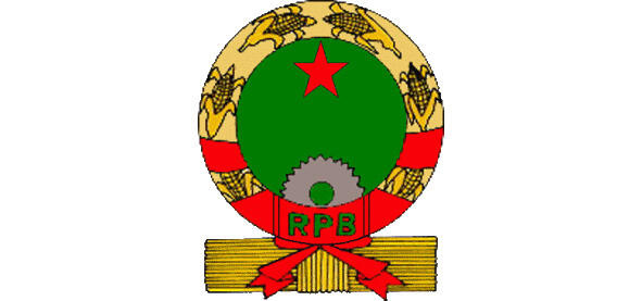 В верхней части герба пятиконечная красная звезда, символизировавшая «национальное единство революционных сил при создании нового общества», в нижней возникающее зубчатое колесо, символизирующее развивающуюся промышленность страны. Все это обрамляли стебли кукурузы с початками, символизирующие сельское хозяйство, перевитые в нижней части красной лентой с аббревиатурой названия страны: «RPB».