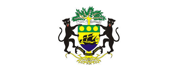 Под кроной дерева на серебряной ленте начертан девиз: «UNITI PROGEDIEMUR» («Объединенные движемся вперед»), который символизирует объединение около 40 этнических групп страны. Под щитом, над корнями дерева, на голубой ленте серебром другой девиз: «UNION TRAVAIL JUSTICE» («Единство, труд, справедливость»).