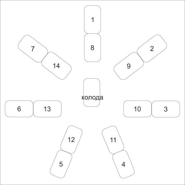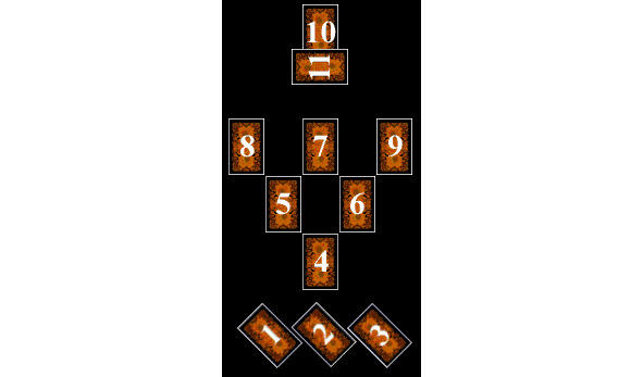 Этот расклад используется для исследования тайных влияний, для выявления обмана и изучения страхов.