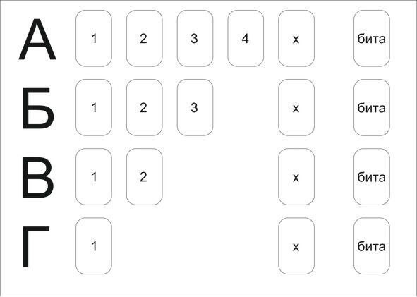Карты раскладывают как бы восьмеркой, как показано на схеме.