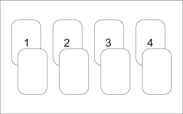 Перемешайте эти четыре карты и положите в ряд рубашками вверх.
