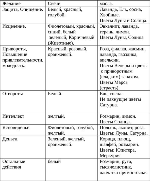 Эта таблица поможет вам создавать смеси из масел, трав, камней, и. т. д.
