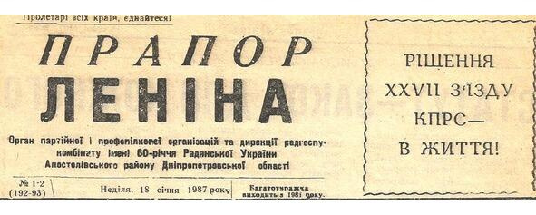 Така потужна організація в районі, та що в районі в Україні, як радгосп-комбінат, мала свою багатотиражну газету, називалась вона «Прапор Леніна». Взагалі, повинен Вам сказати, що справа не в назві (може когось дратує?), газета була наша, Нивотрудівська, про наших людей, про передовиків і новаторів виробництва, про трудові династії, про досягнення,