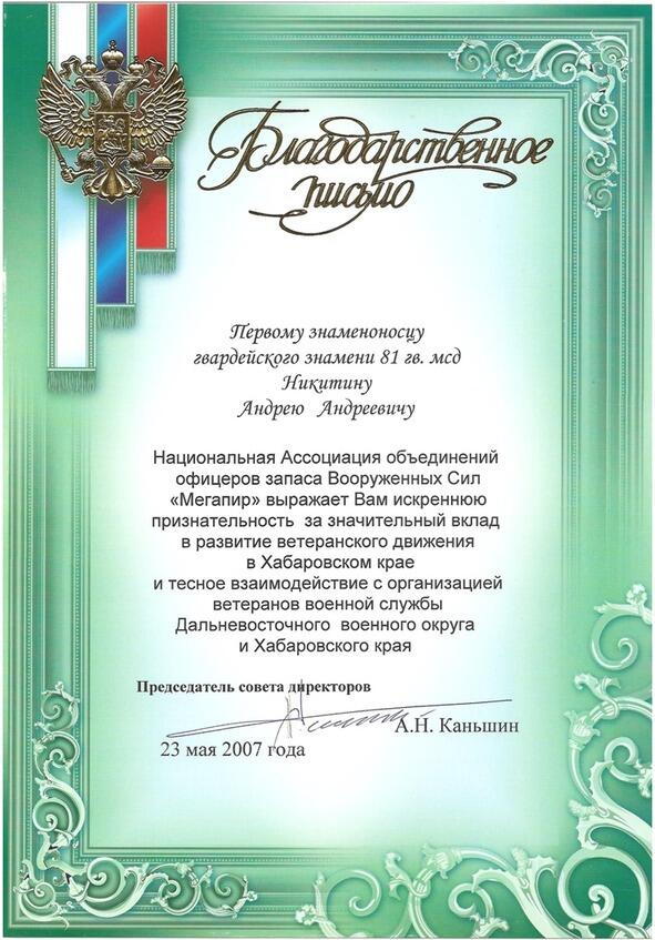 Благодарственное письмо за вклад в развитие ветеранского движения. Фото: Алина Аболончик.