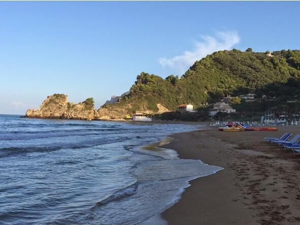Отсюда открываются виды на Канони и аэропорт Корфу на востоке и вы можете наблюдать как взлетают самолеты.