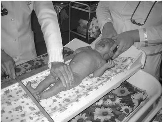 Рис. 9. Измерение длины тела ребенка первого года жизни