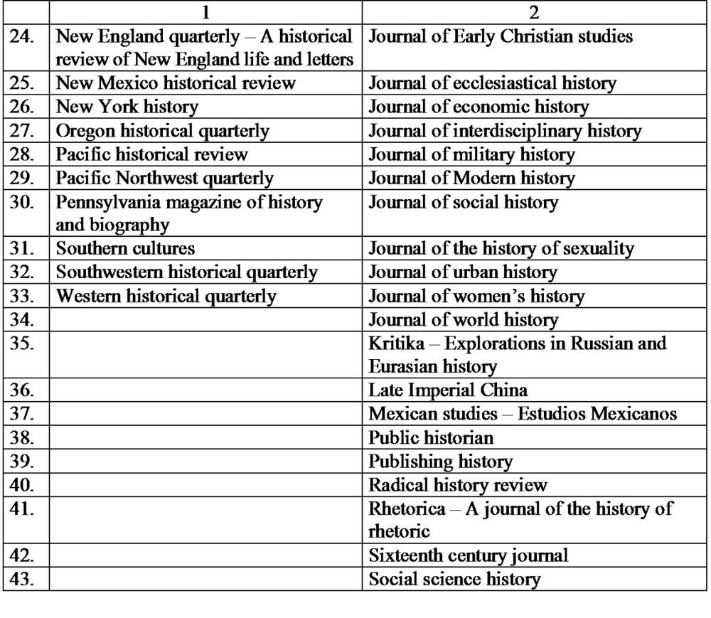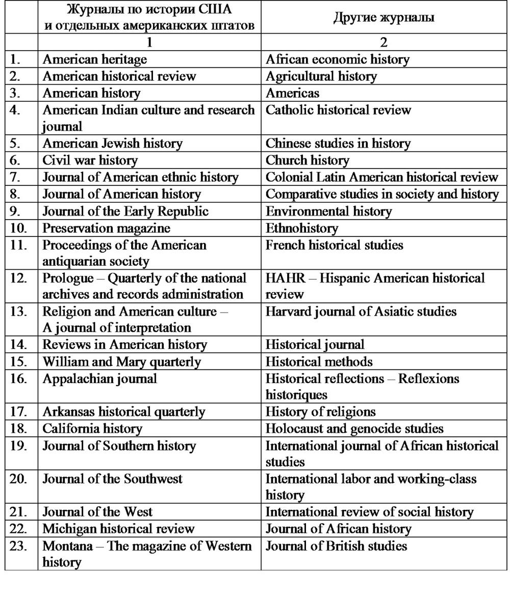 Входящие в WoS исторические журналы, издаваемые в США (по состоянию на начало 2009 г.) [9]