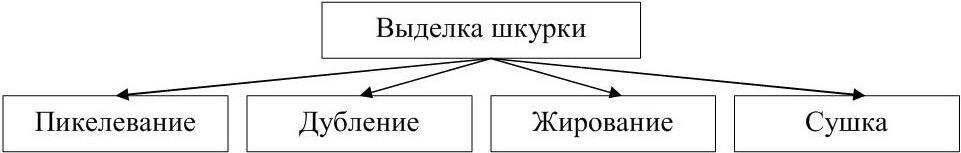 Основные этапы процесса выделки шкур представлены в таблице 5 [7, с. 36-41].