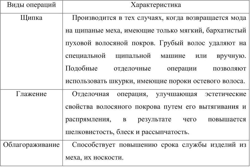Таблица 6 Операции отделки шкуры