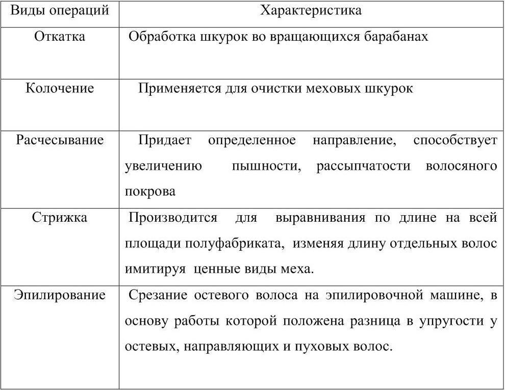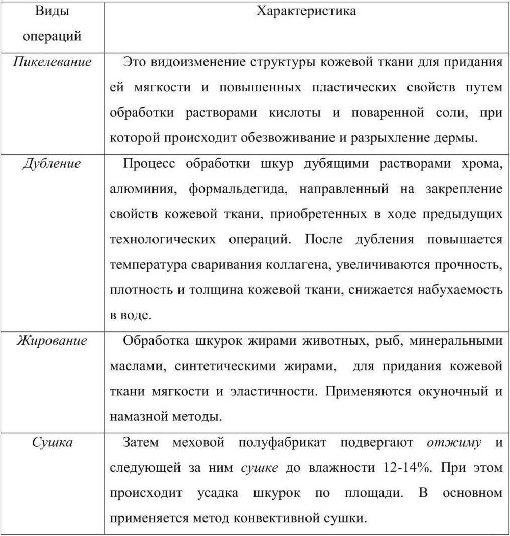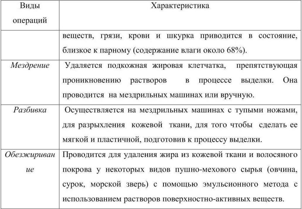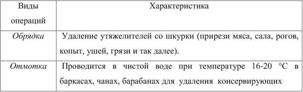 Таблица 5 Операции выделки шкуры