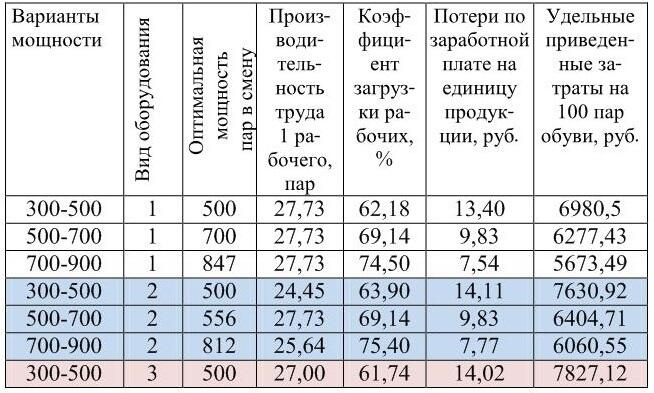 Таблица 1- Расчет оптимальной мощности с диапазоном 300-900 пар на примере мужской обуви