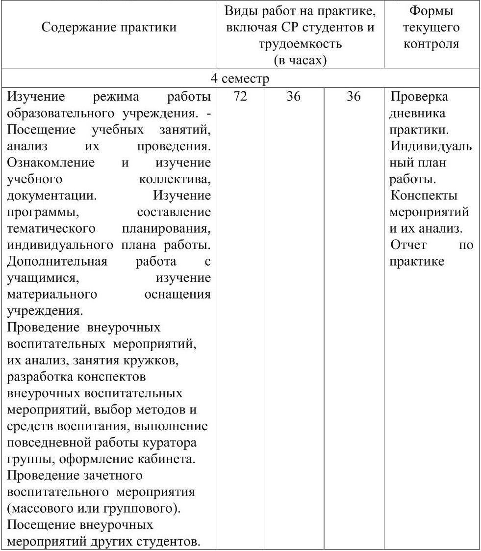Таблица 1 Структура педагогической (учебно-воспитательной) практики