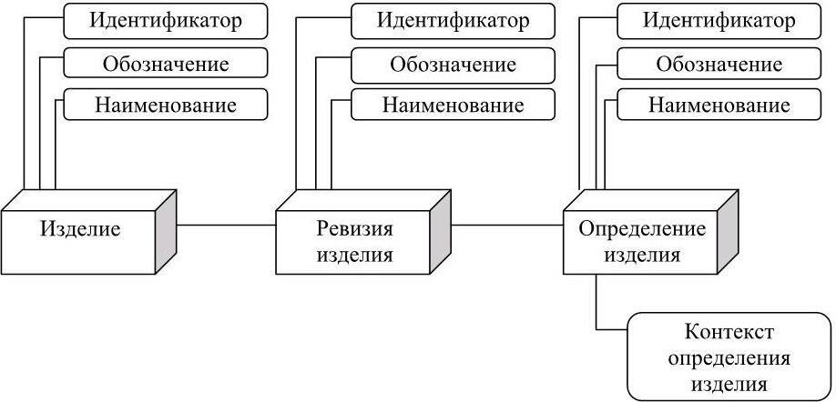 Процесс разработки, как правило, носит итерационный характер. Уточняются требования к изделию, появляются новые решения, вносят свои коррективы технологии производства и условия эксплуатации. Для отражения изменений, не влияющих на функциональность и взаимозаменяемость изделия, используется объект «ревизия изделия». У изделия может быть одна или несколько ревизий. Для конкретизации состава ревизии изделия используют объект «определение изделия». Определение изделия всегда рассматривается в некотором контексте. Контекст фактически определяет категорию разработчиков и/или пользователей электронного описания изделия. Конструктор, разрабатывающий изделие, формирует его структуру чаще всего по функциональному принципу система, подсистема, блок и т.д. Технолог, проектирующий сборку какого-либо агрегата, включает в его состав части систем, размещенных в этом агрегате. Эксплуатанта состав изделия интересует с точки зрения того, как оно обслуживается. Поэтому изделие должно быть определено по крайней мере в трех контекстах как спроектировано, как построено и как эксплуатируется.