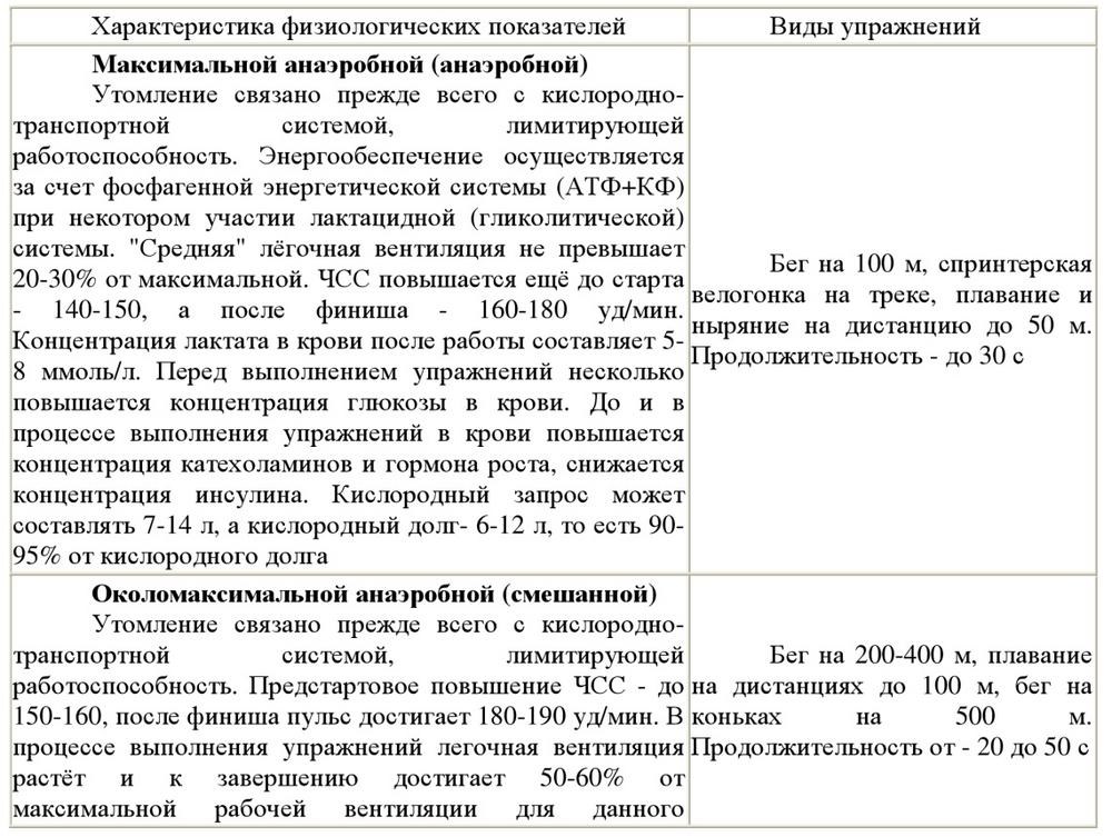 Тренировочная и соревновательная деятельность спортсмена включает в себя выполнение упражнений различной мощности и продолжительности, циклических и ациклических, и т.д. При этом, естественно, возможно проявление различных механизмов и локализации утомления, показанные в табл. 3 [Коц Я.М., 1986; Мищенко B.C., 1990].