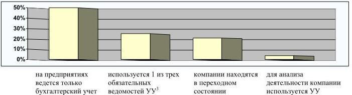 Результаты свидетельствуют о том, что только у 4% предприятий управленческий учет поставлен должным образом и используется на стратегическом уровне.
