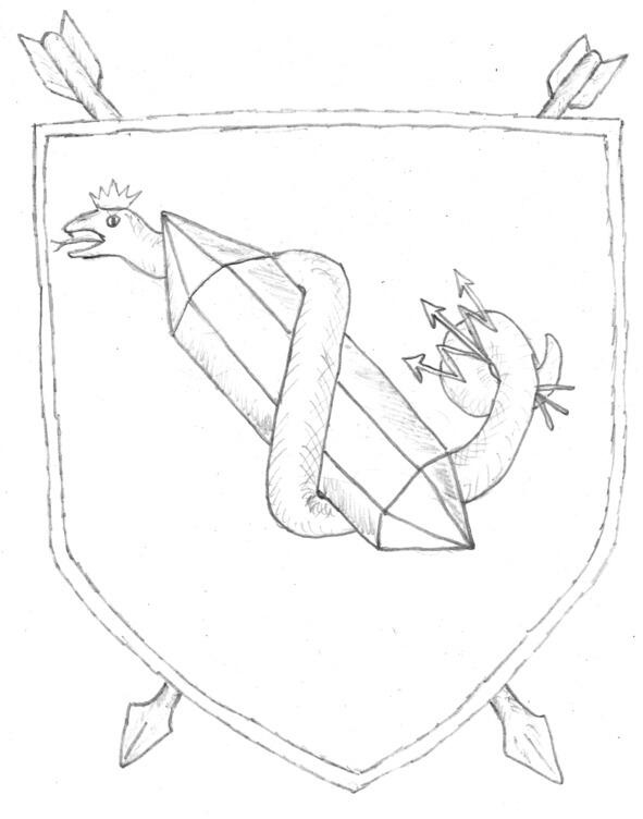 В штабе раскопок яблоку негде было упасть. Собрались все: от учёных до техников. Ноно и Зуи примостились в уголке, с любопытством разглядывая новые и интересные находки, сделанные археологами. Девочку заинтересовала странная подвеска в виде золотистой змейки, оплетающей зеленоватый камешек. На голове змейки красовалась корона в виде обруча с ромбовидными зубцами, а в хвосте она зажимала три молнии. Сам знак был закреплён на пятиугольной серебряной пластинке в виде щита, из-за края которой выглядывали концы скрещённых стрел.