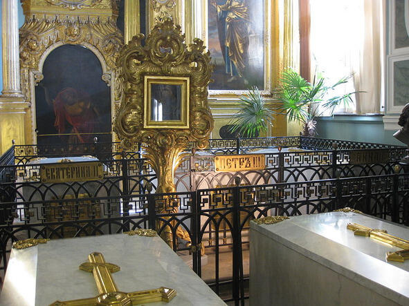 Ч.VI.4 Надгробия супругов: императора Петра III и императрицы Екатерины II Великой в Зимнем Дворце Санкт-Петербурга. На табличке с обратной стороны стоит одна дата смерти императрицы Екатерины II Великой 6 ноября 1796 года; создаётся впечатление, что супруги жили долго и счастливо и умерли в один день.