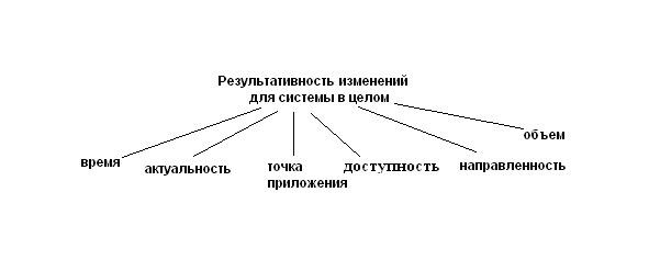 Однако эффективность и значимость тех или иных изменений для системы может быть разной. Для достижения определенных, нужных и желанных для клиента конструктивных изменений в системе они должны быть максимально управляемы и отслеживаться им самим. Для этого при первичном воздействии на систему, при запуске изменений стоит учитывать те аспекты, которые создают общесистемный результат.