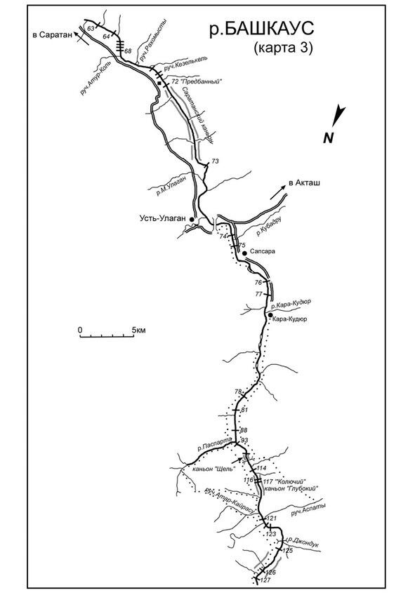 Этот сказочно красивый и фантастически сложный маршрут является одним из лучших на территории бывшего СССР. В заключение приведем список возможных мест для ночевок в Нижнем ущелье Башкауса: