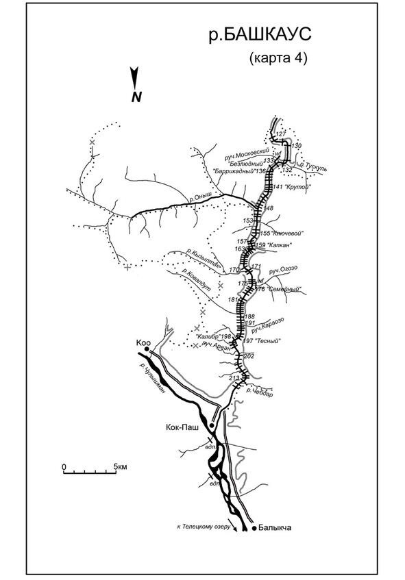 Маршрут по Чулышману, бесспорно, один из интереснейших на Алтае, да и на всей территории бывшего СССР. Река берет начало из озера Джулукуль в Туве и течет по почти ненаселенной местности. До этого озера можно добраться из Кызыла, столицы Тувы, самолетом до Мугур-аксы, далее машиной и пешком. Нам представляется наиболее оптимальным (но и более дорогим) другой вариант заброски: из Горно-Алтайска вы вертолетом добираетесь до крошечного селения Язулу. До Язулу можно добраться и грузовиком повышенной проходимости (если повезет) или пешком через Саратан (см. описание р. Башкаус). В зависимости от целей и квалификации группы, можно начать сплав от Язулу (это будет маршрут 5 6 кат. сл.), либо от Солдатского (910 км выше Язулу) или Чертова моста (7 8 км выше Язулу) с прохождением сложнейших препятствий Язулинского каньона (6 кат. сл.). Учтите, что на эти несколько километров надо зарезервировать не менее недели.