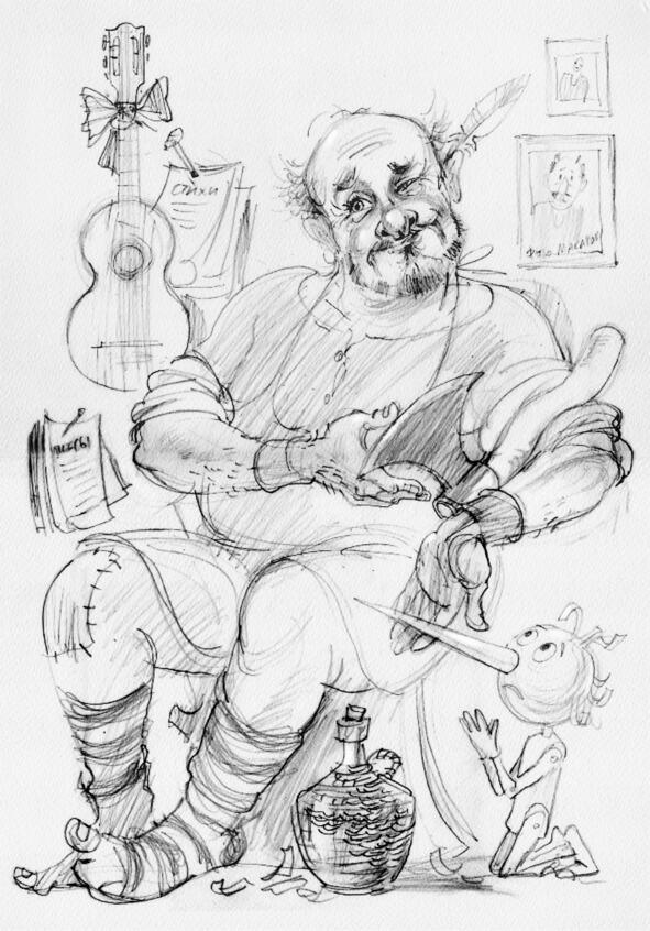 Юмористический портрет автора работы художника Игоря Макарова. 2004 год.